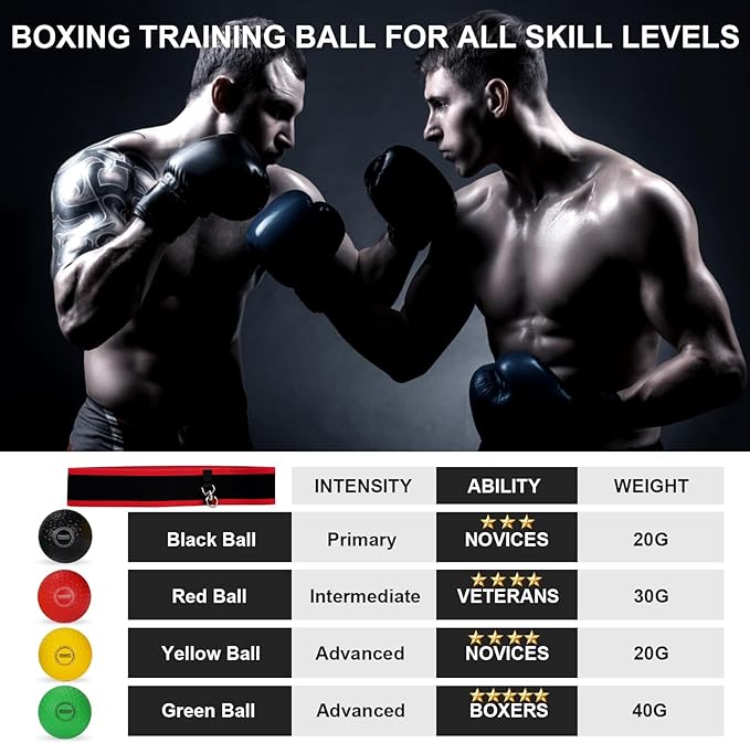 - A PERFECT TRAINING EQUIPMENT- Your boxing training ball set includes 2 balls,The black one is specifically designed to be much easier for novices. Once you could dominate it, change to the red ball which is much more bouncy.