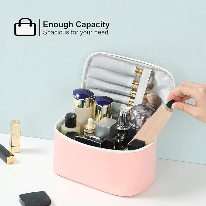 KITENROM Portable Makeup Bag Cosmetic Bags for Women Medium Pouch Case Purse Make Up Organization Waterproof (Pink)