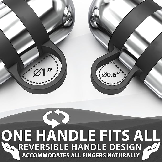 - ★ HOLD-TIGHT GRIP ★ – With their rounded oblong and smooth design, these hand weights will easily sit in your palms. And with the addition of a finger band, they really aren’t going anywhere! The screw-in assemblies and reversible finger band allows you to easily switch between a Large and Small-size grip. These grips are specifically made with your comfort and safety in mind, and to be used by athletes of different ages and sizes!