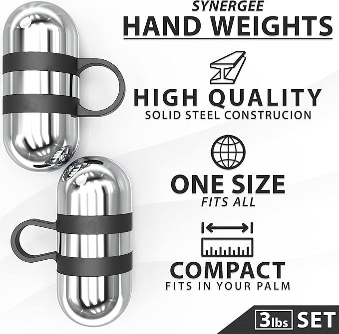 - ★ YOUR FITNESS IN YOUR HANDS ★ – Synergee Hand Weights are here to prove the best things come in small packages. These weights fit perfectly in your palm and – aside from the awesome challenge they’ll add to your workouts – you’ll barely notice they’re there! These small but mighty weights will transform your workouts by encouraging you to add a few extra pounds to exercises whenever you can.