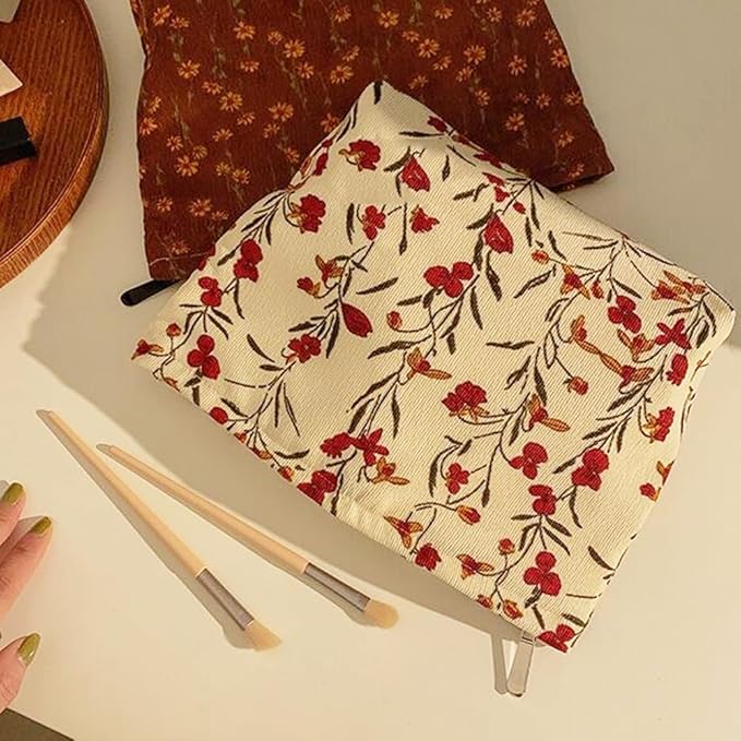 SxoSyo Cosmetic Bags for Women Makeup Bag Large Capacity Purse Travel Toiletry Zipper Storage Pouch Make up Brushes Organizer for Gifts (flowers and plants, Beige)