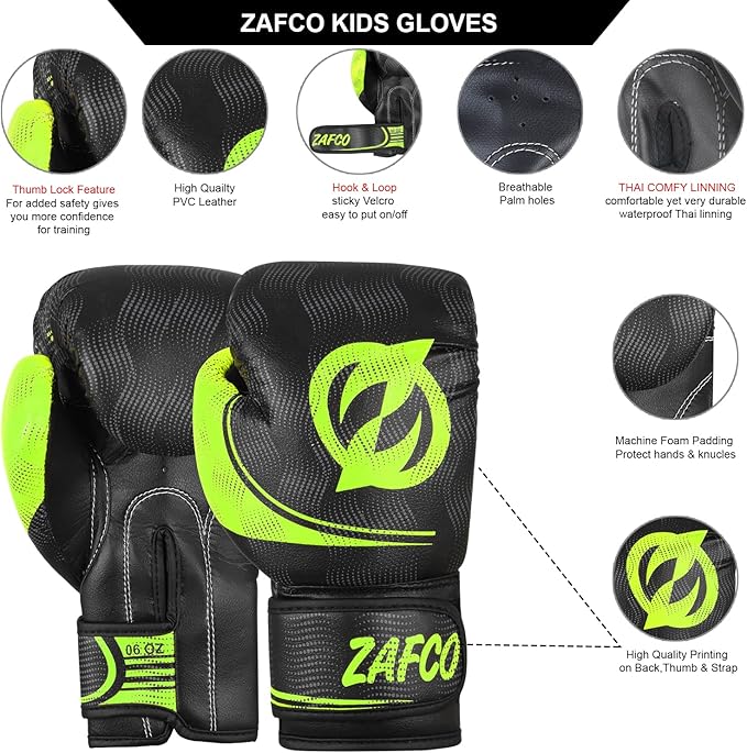 - ✅ANTI-PERSPIRATION HOLES: These Zafco kids boxing training gloves have a breathable pinhole palm that offers increased hygiene efficiency. Top quality bag gloves for kids to reduce offensive odors, moisture through children hands.