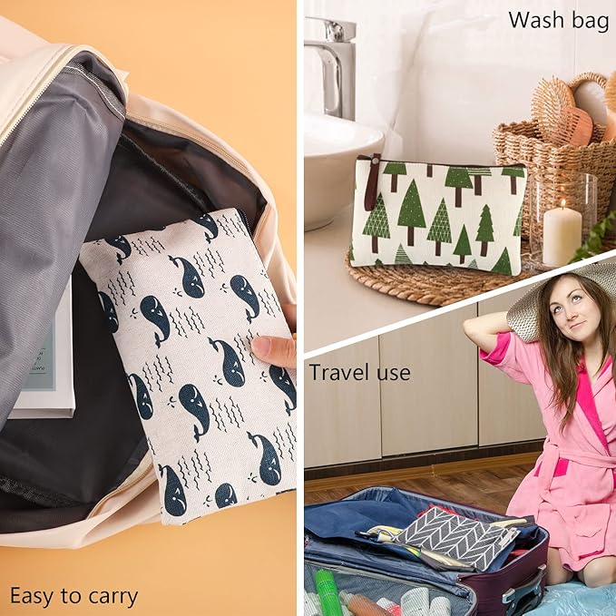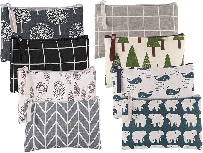 - 【Package Include】You will get 8pcs canvas cosmetic bags with different patterns, the size is 22*14cm/8.66*5.5inch, which can hold your daily necessities