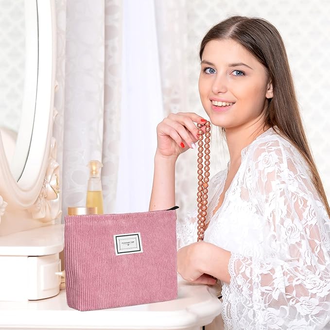 - Large Capacity and Carry Easily: the corduroy makeup bag is about 10 x 7 inches, can accommodate many items, such as lipsticks, makeup brushes, eyebrows, eyeliner, face cream, lipstick, perfume, skincare products and more, convenient for your life; They can be easily stored in purse, backpack, tote bag or suitcase for carry conveniently