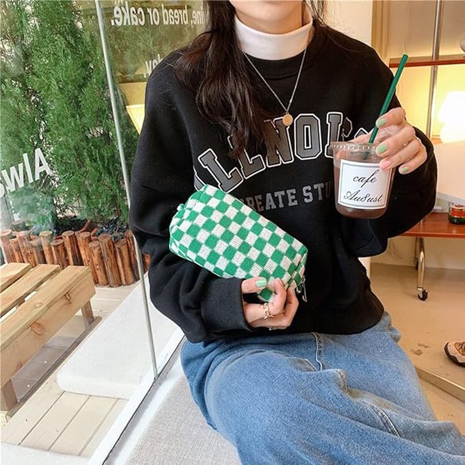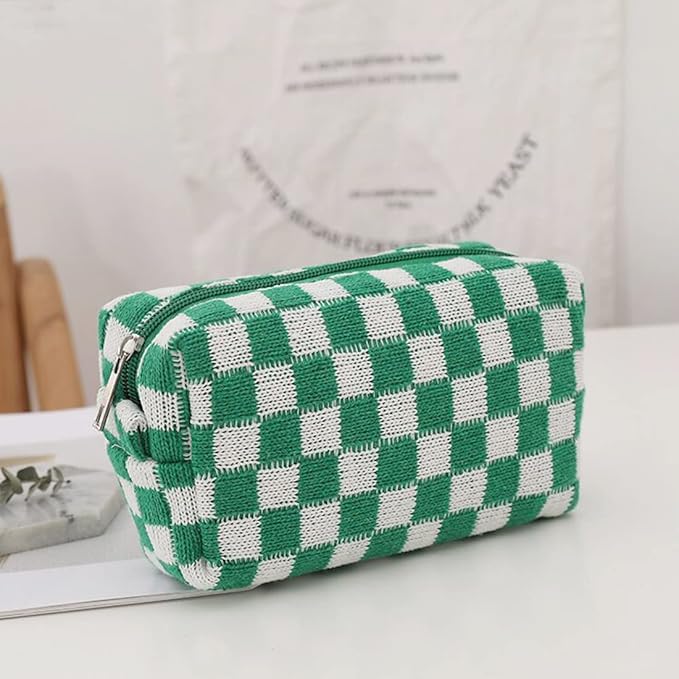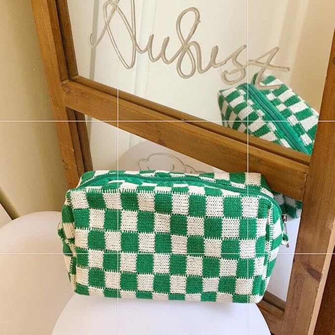 SxoSyo 2 Pcs Cosmetic Bags for Women Makeup Bag Purse Travel Toiletry Zipper Storage Pouch Make up Brushes Organizer for Gifts (Checkered, Green 2)