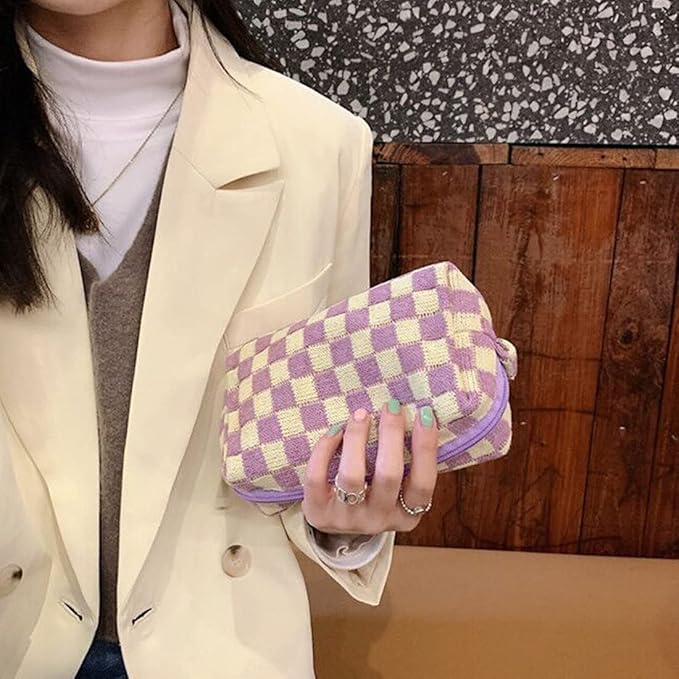 - 【Fashion Design】The vivid cute lovely small makeup pouch was designed to elevate your makeup experience.You will get 2 pack checkered cosmetic bag, perfectly shows elegance and beauty.ideal for carrying and using during your travel.