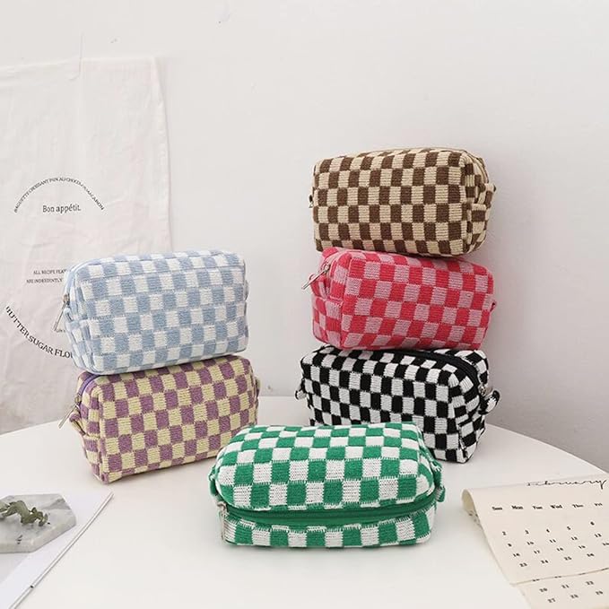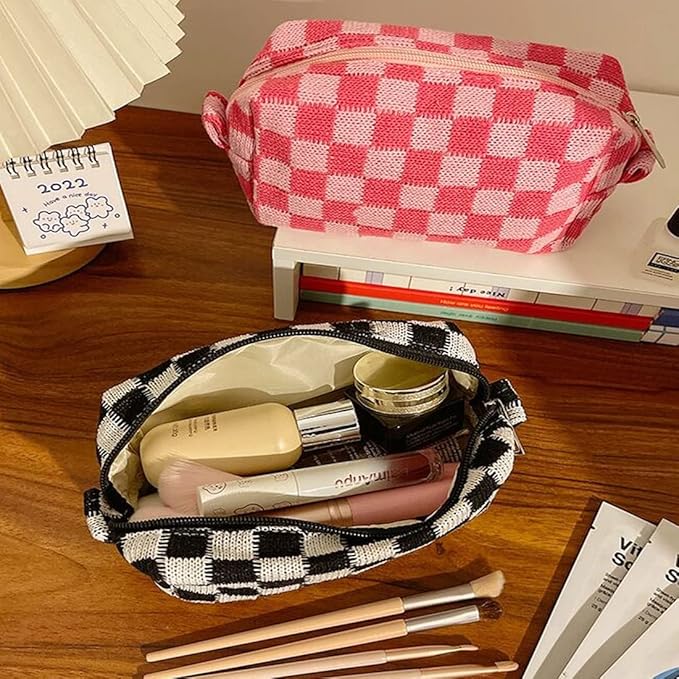 - 【Fashion Design】The vivid cute lovely small makeup pouch was designed to elevate your makeup experience.You will get 2 pack checkered cosmetic bag, perfectly shows elegance and beauty.ideal for carrying and using during your travel.