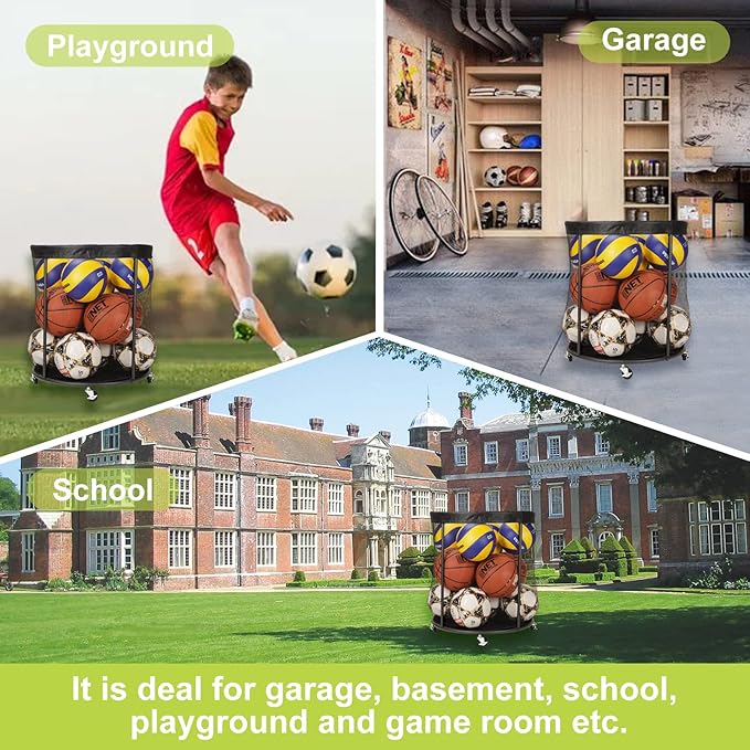 - WITH WHEELS: The Rolling Sports ball cart features in 4 heavy-duty smooth rolling wheels, Indoor Outdoor Design, which is easy to move the organizer anywhere and fits in a specific position