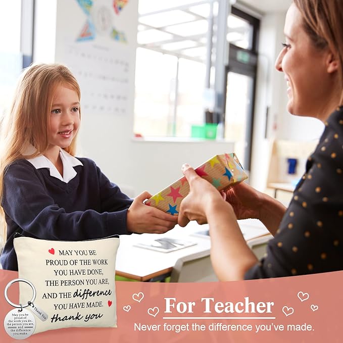 - teacher appreciation gifts bulk: the thank you keychain is mainly made of stainless steel material, and the makeup bag is mainly made of canvas material, sturdy and firm, not easy to fade or deform, providing with a long service life