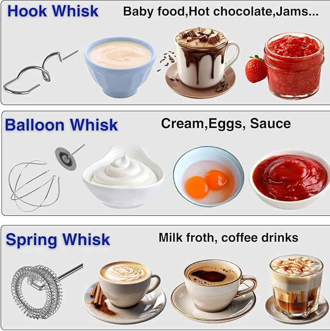 - 【ECO-FRIENDLY MATERIALS】- Our electric mixer handheld has a powerful 19000 rpm motor and food-grade 304 stainless steel whisks for durability and low noise. The ergonomically designed handle gives you a comfortable grip, and the eco-friendly ABS plastic body ensures a long service life. With our mixer, you can enjoy frothy drinks without worrying about rust or breakage.