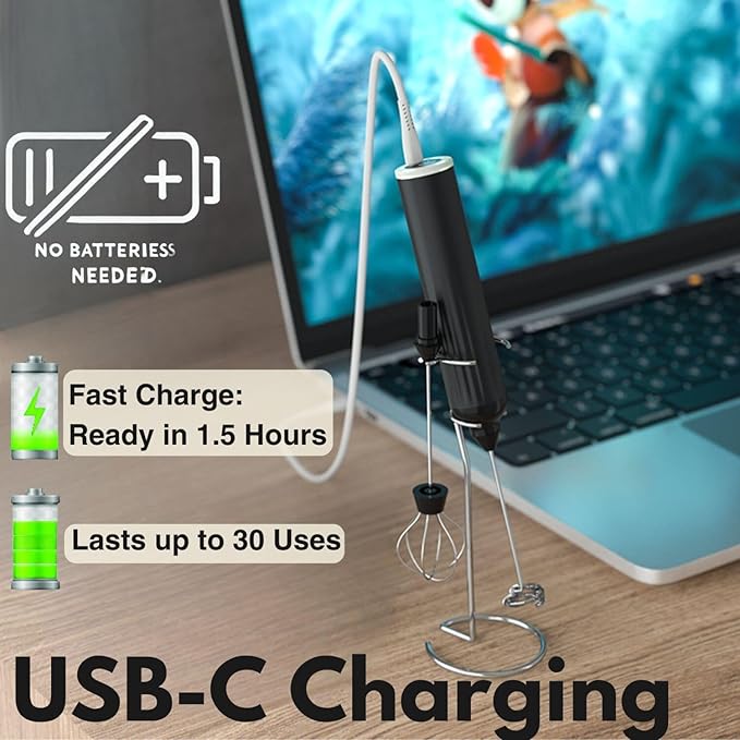 - 【GET CREAMY FROTH IN A FLASH】- Our handheld milk frother can make foamed milk and create froth in just 15 seconds or less. With the perfect blend of creamy milk foam and coffee, you'll be ready to start your day off right. This frother is great for making coffee, lattes, cappuccinos, matcha, hot chocolate, and other frothy drinks. And it works just as well with cold drinks, too. Get ready to experience the joy of creamy, frothy goodness in no time!