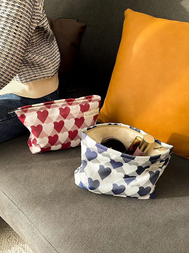 Summer Swan Large Floral Mid-day Clutch Period Kit Hygiene Skincare Cute Makeup Bag (Valentine Hearts Red)
