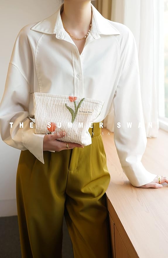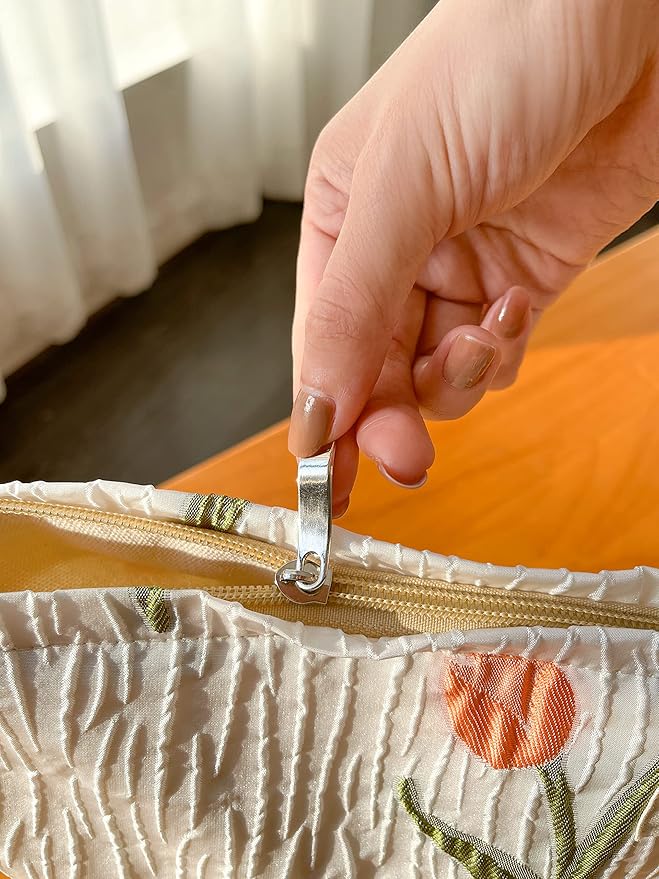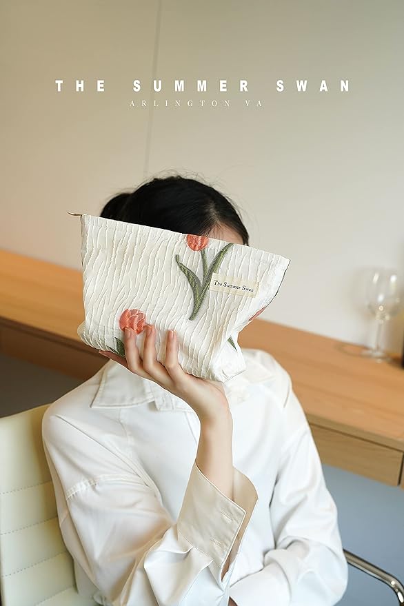 The Summer Swan | Large Aesthetic Makeup Bag Preppy Skincare Organizer Floral Mid-day Clutch Period Kit Hygiene Cute (Tulip)