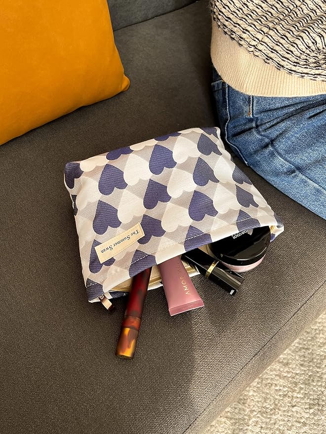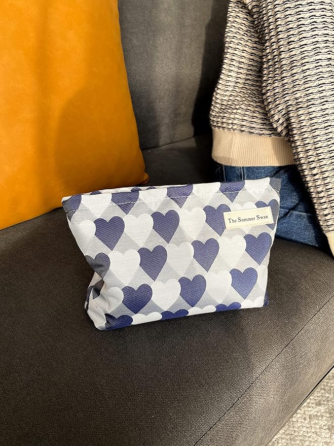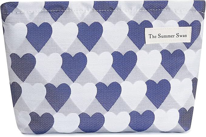 Summer Swan | Large Floral Mid-day Clutch | Period Kit & Hygiene Bag | Skincare Bag (Valentine Hearts Blue)