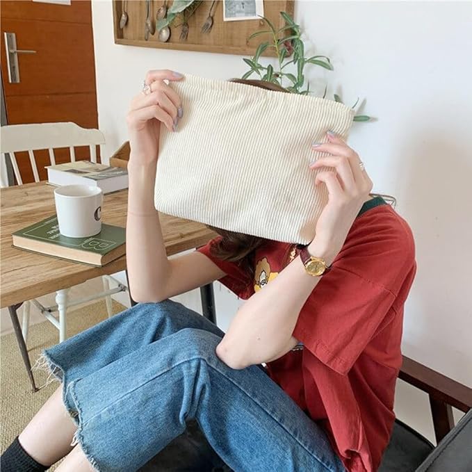 Cosmetic Bags for Women Makeup Bag Large Capacity Purse Travel Toiletries Zipper Storage Pouch Make up Brushes Organizer for Gifts (Corduroy, Black)