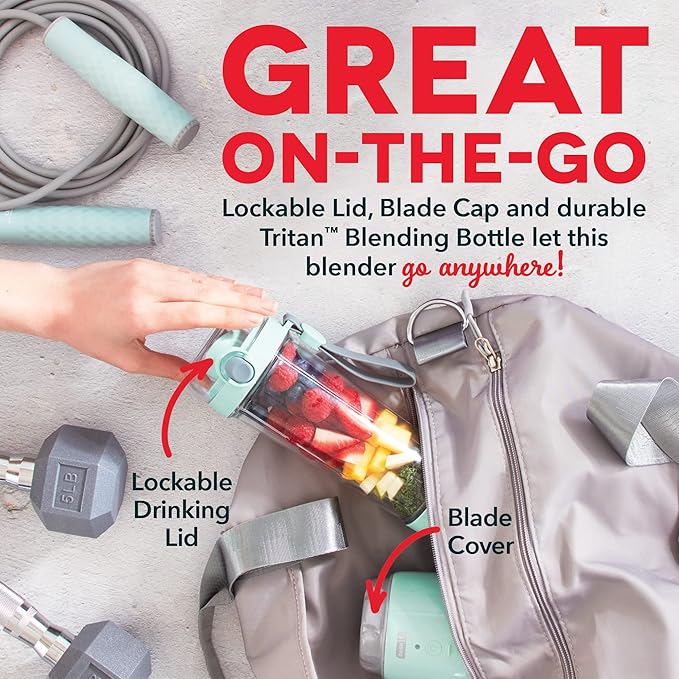 - STAINLESS STEEL BLADES: Electric blender features Japanese stainless steel blades that blend fruits and veggies with ease and won’t dull over time; Tritan bottle is incredibly durable and virtually unbreakable; Simple one-touch functionality