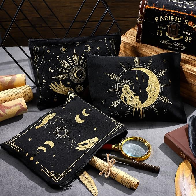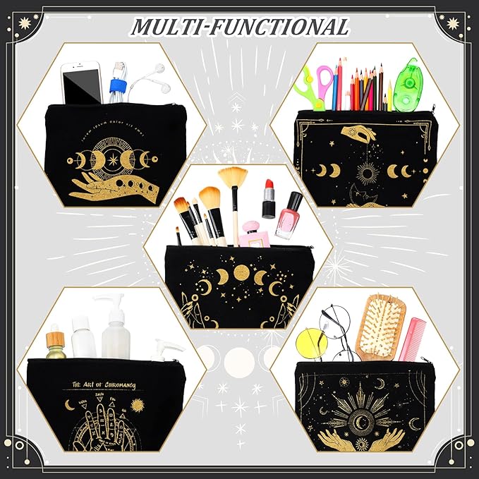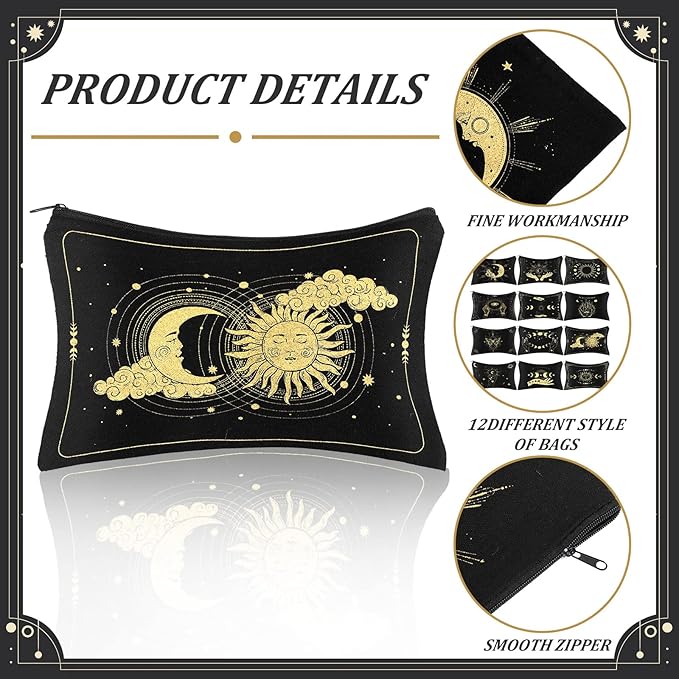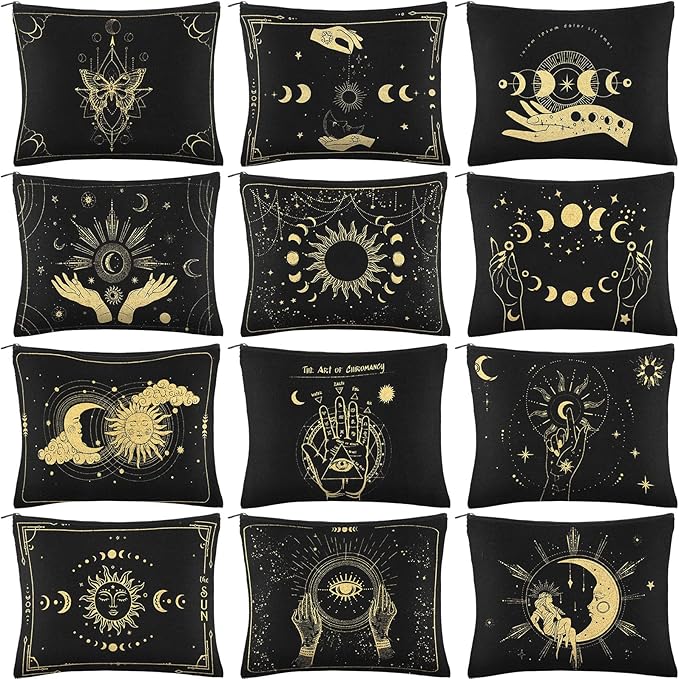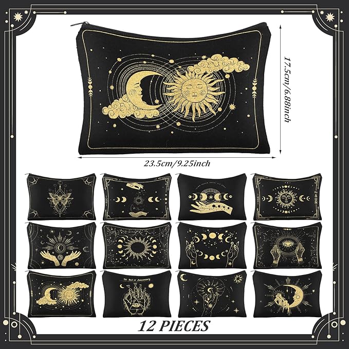 Kajaia 12 Pcs Witch Tarot Makeup Bags Cute Portable Travel Purse Toiletry Pocket Make up Organizer Storage Zipper Pouch Makeup Brush Cosmetic Bags for Women Adult Aesthetic Stuff