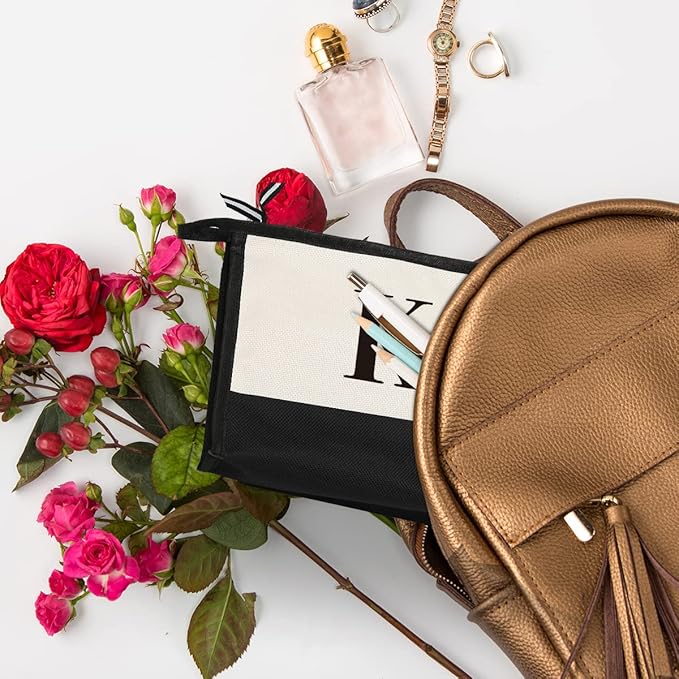 Monogrammed for Women Initial bridesmaid gifts, Personalized monogram Monogram Cosmetic Bag,Travel Makeup Bag Suitable for Wedding weekend Beach Gift for Women Teachers Friends.Pure letters K