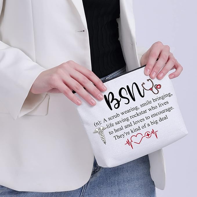 CMNIM BSN Gifts Bachelor of Science in Nursing Graduation Gifts Cosmetic Makeup Bag BSN RN Gifts for Coworkers (BSN Makeup Bag white)