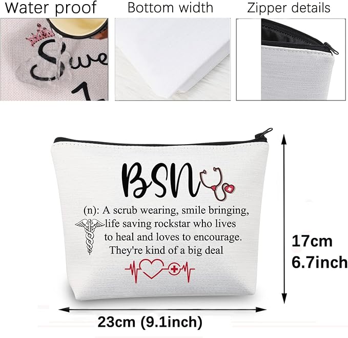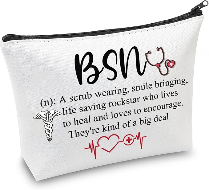 - BSN coworker gifts nurse graduation giftstravel bag toiletry case zippered luggage pouch multipurpose bag canvas bags cosmetic bag for purse this functional portable bag suitable for daily use and travel.