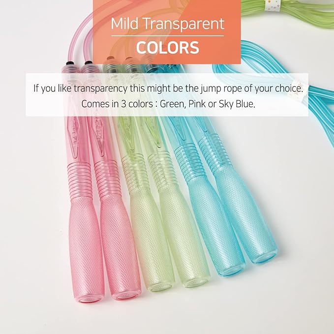- Mild Transparent Colors - If you like transparency this might be the jump rope of your choice. Comes in 3 colors: Green, Pink or Sky Blue.