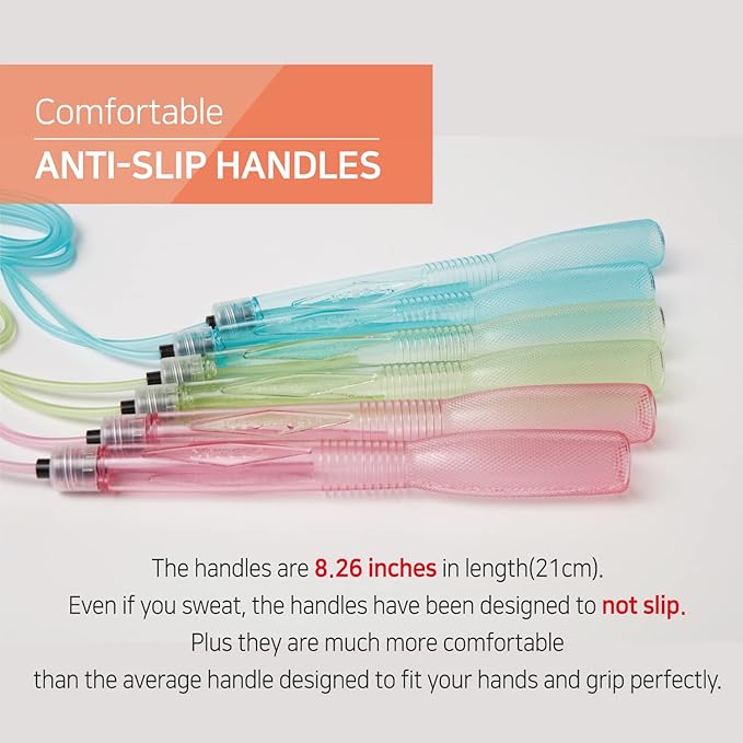 - Mild Transparent Colors - If you like transparency this might be the jump rope of your choice. Comes in 3 colors: Green, Pink or Sky Blue.
