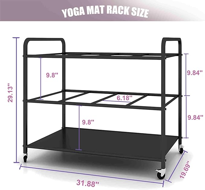 - ★Large Capacity: 80 × 50 × 70cm/31.5 × 19.7× 27.6inch. Sturdy heavy duty yoga mat shelf can storage 12 roller mats.