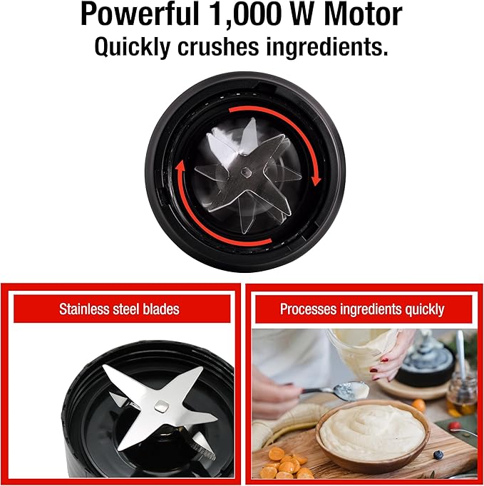 - Powerful Shake Blender: Enjoy nutrition in 1 minute with the Koblenz Mix&Go blender, featuring a powerful 1,000-watt motor and stainless steel blades with 6 arms, making it efficient at blending smoothies, shakes, juices, and sauces within seconds.