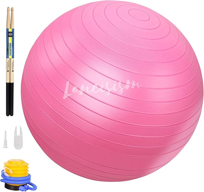Cardio Drumming Equipment Set - 26" Exercise Ball with Pump and Weighted Cardio Drumming Sticks with Grips - Fitness Yoga Ball Drumsticks Workout for Balance, Rhythm, Aerobic Moves, Dance, Gymnastics