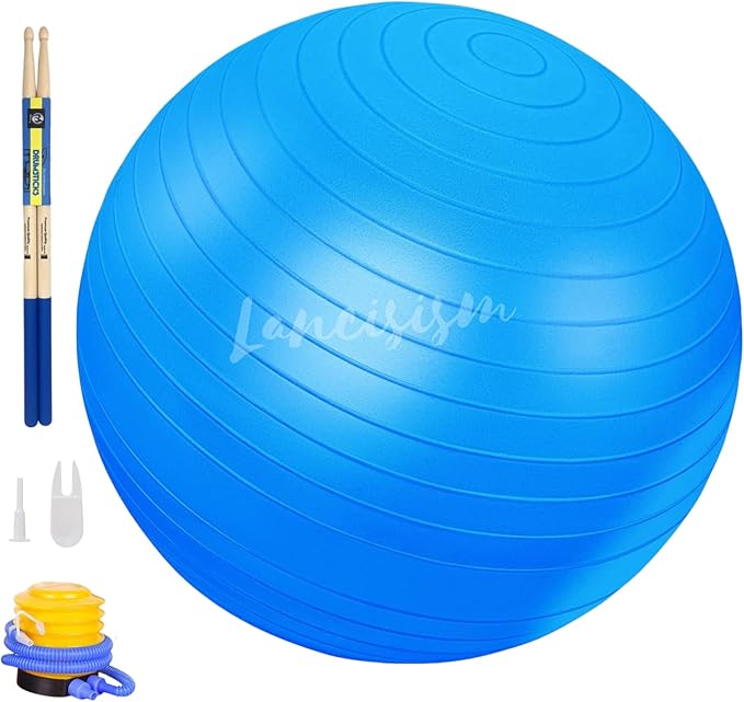 Cardio Drumming Equipment Set - 26" Exercise Ball with Pump and Weighted Cardio Drumming Sticks with Grips - Fitness Yoga Ball Drumsticks Workout for Balance, Rhythm, Aerobic Moves, Dance, Gymnastics
