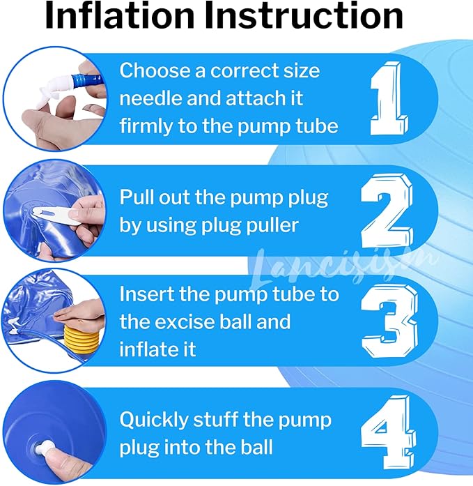 - SIMPLE TO INFLATE & USE - The aerobic exercise ball takes two filling sessions for proper inflation. Partially inflate it at night and then fully inflate it in the morning. Thanks to the ball air pump you can inflate it quickly and easily anytime without any hassles.