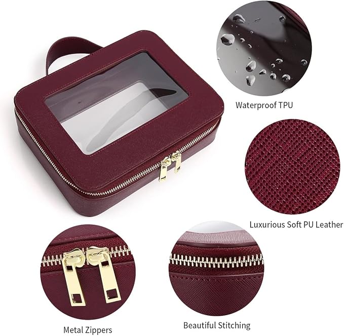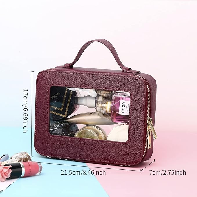 Clear Makeup Bag for Women Waterproof Travel Makeup Case Portable Cosmetic Case Toiletry Bag Car Organizer with Zipper (X/Burgundy, L)