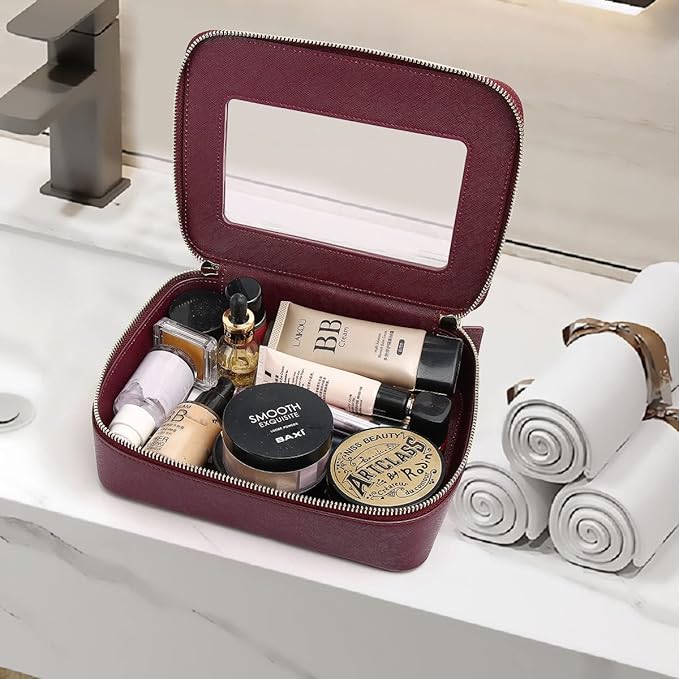 - [High-quality material] : Made from Faux Leather material inside and outside, this waterproof travel makeup case is easy to clean with a damp cloth or wet tissue.