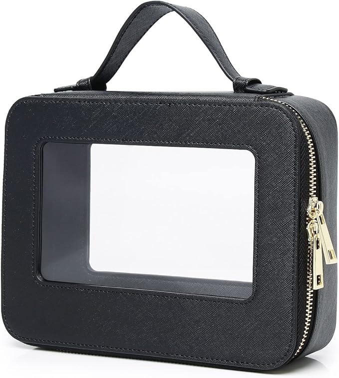 Clear Makeup Bag for Women Waterproof Travel Makeup Case Portable Cosmetic Case Toiletry Bag Car Organizer with Zipper (Black, L)