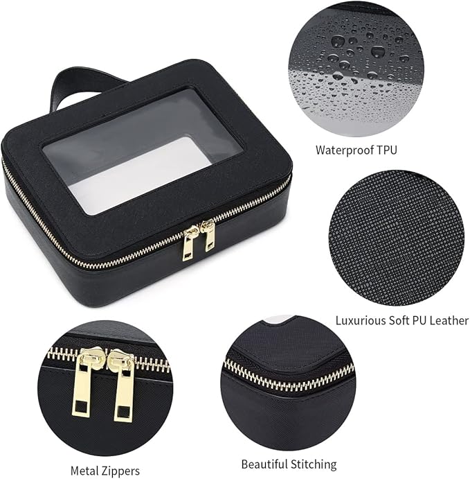 - [Clear Windows Design] : Travel with ease as our travel toiletry bag is TSA compliant. The transparent panel allow you to easily see and access your belongings, and the metal zipper ensures durability and smooth opening and closing.
