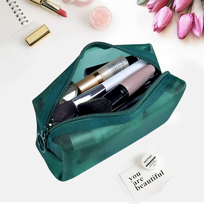 Aosbos 3-Pack Mesh Cosmetic Bag Set - Travel/On-The-Go Makeup Storage, Zipper Closure Small Pouch
