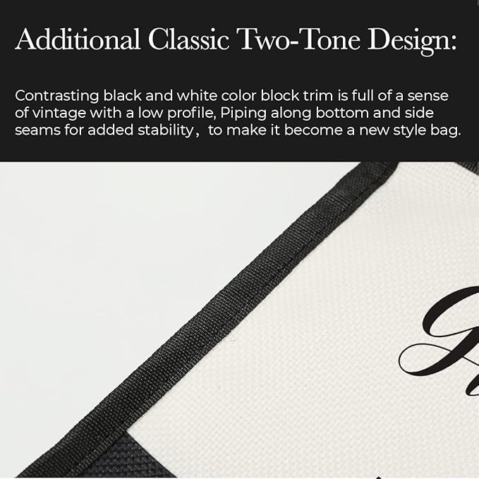 - Additional Classic Two-Tone Design: Contrasting black and white color block trim is full of a sense of vintage with a low profile, Piping along bottom and side seams for added stability,to make it become a new style bag.