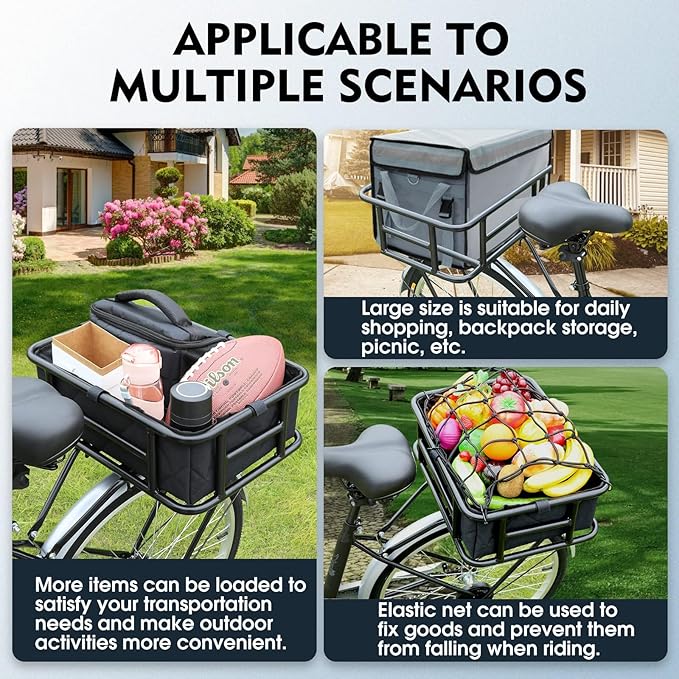 - ๐ช๐ต๐ฎ๐ ๐๐ป๐ฐ๐น๐๐ฑ๐ฒ๐ฑ: Each package includes a metal bike basket, cargo net and thick lining.You can use it to carry snacks, water cups and other small items without worrying about them falling out.