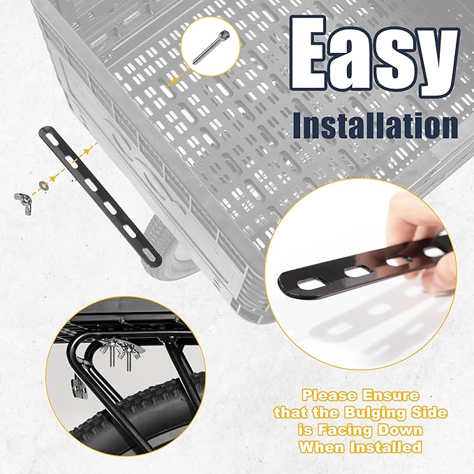 - EASY TO INSTALL - Installation is a breeze - just ensure that the bulging side is facing down when installed. This bicycle basket for adult bikes measures 24cm/9.4", 43.5cm/17.1", and 32.5cm/12.7" with a large capacity of approximately 34L, making it excellent for carrying all of your essentials. Plus, we've included a premium-quality cargo net for added convenience.