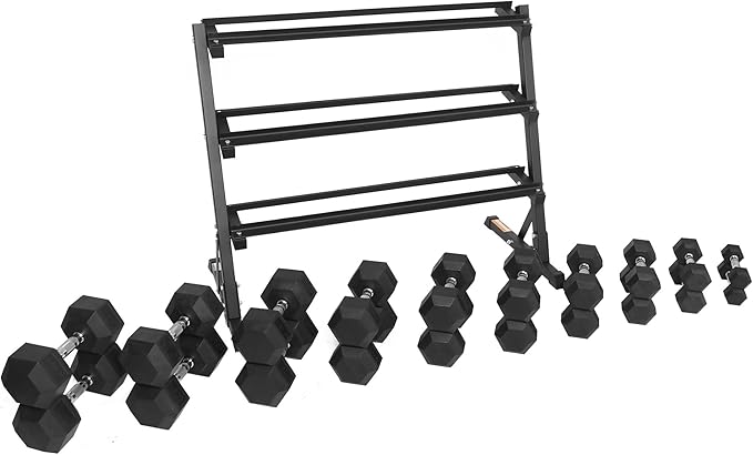 Premium Rubber Coated Hex Dumbbell Weight Set, Multiple Packages