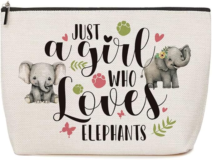 Elephant Decor Elephant Gifts for Women Just A Girl Who Loves Elephants Makeup Bag Elephants Lover Gift for Women Girls Animal Lover Birthday Christmas Gifts for Girls
