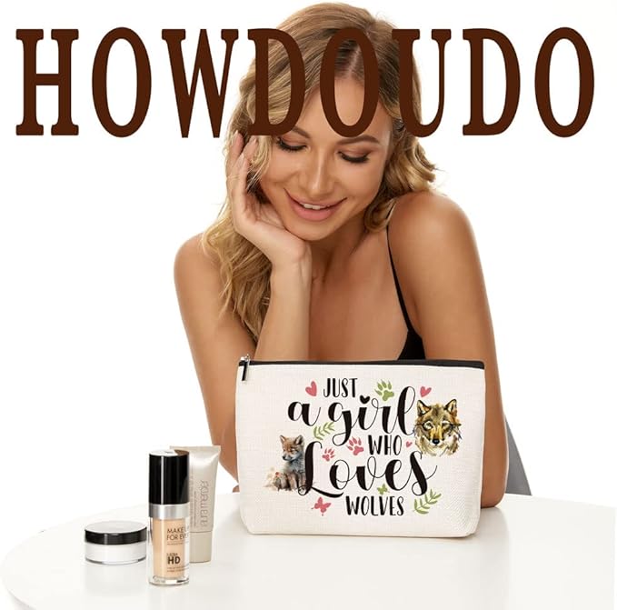 Wolf Gifts Just A Girl Who Loves Wolves Makeup Bag Wolf Lovers Gift Wolf Decor Bag Animal Lovers Gifts for Women Birthday Christmas Presents for Her Friends Sister BFF Besties