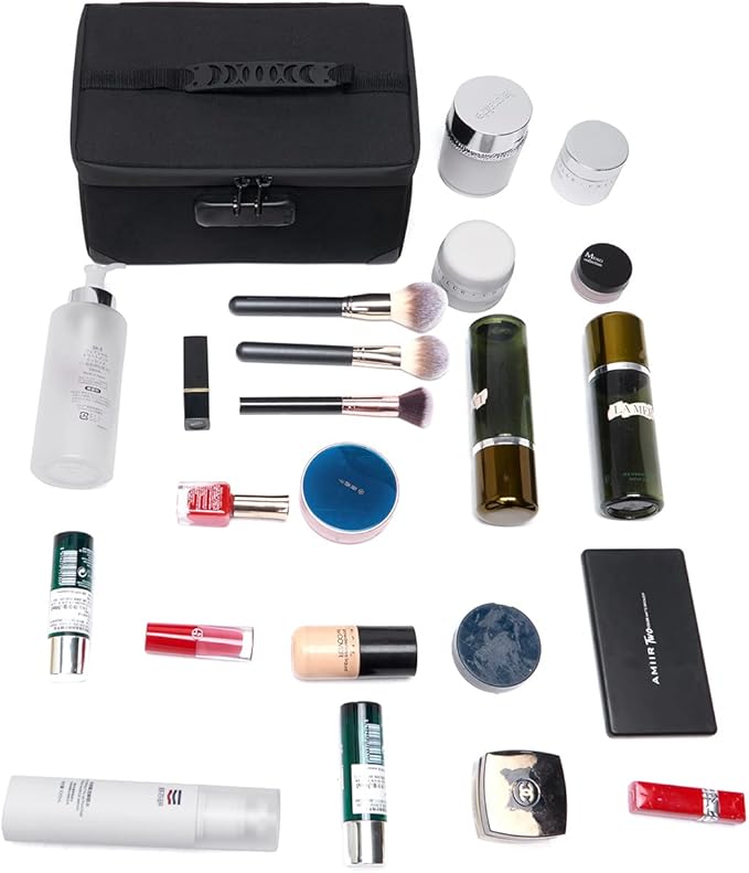 - Cosmetic Bag With Lock ---The large capacity travel cosmetic bag is designed with multiple divisions and compartments, which can store not only your cosmetics,essential oils, Toiletries kits, valuables, etc.The mechanical structure of the three-position combination lock can better protect valuables and privacy
