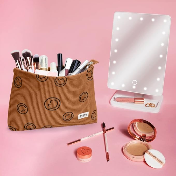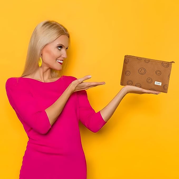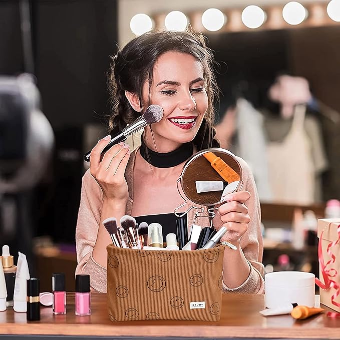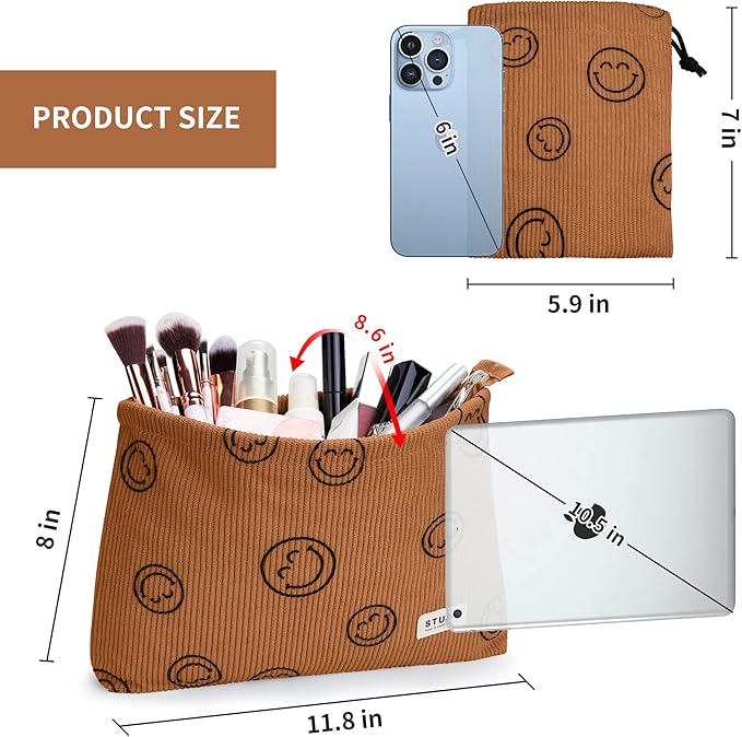 WLLWOO Makeup Bag-2pcs Smile Face Corduroy Cosmetic Bag Zipper Interior Waterproof Pencil Case Coin Purse Travel Toiletry Small Makeup Pouch For Women