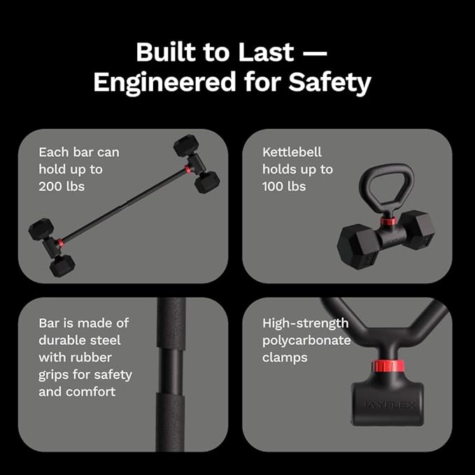 • TRANSFORM YOUR DUMBBELLS: Turn almost any dumbbell into a weight-adjustable barbell or kettlebell set with the Jayflex Hyperbell Bundle for home workouts and strength training.