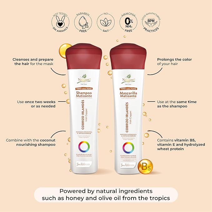 naissant Irish Copper Hair Toning Mask | Color Depositing | Moisturize, Refresh & Neutralize Brassy Tones | Paraben, Ammonia & Sulfate Free | Pro-Vitamin B5, Olive Oil & Honey (Cobrizo) 10.1 Fl Oz