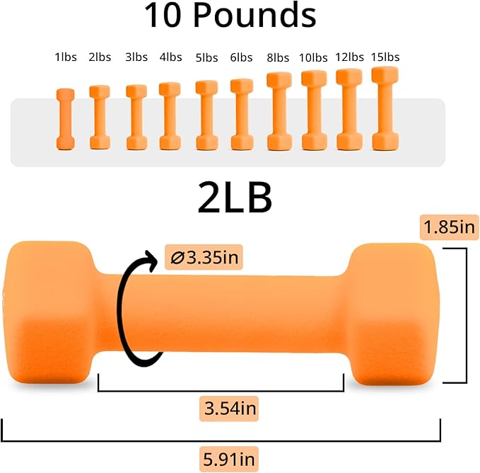 Portzon Weights Dumbbells 10 Colors Options Compatible with Set of 2 Neoprene Dumbbells Set,1-15 LB, Anti-Slip, Anti-roll, Hex Shape for Shoulder,Neck, and Hand Training for Seniors