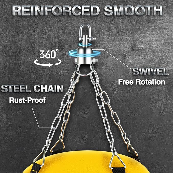 - 【360° Swivel and Sturdy Hanger】Unique 360° Swivel keeps the bag rebound freely after being hit. Equipped with reinforced bag hanger, 4 expansion bolts and a carabiner, it can hold up to 1100LB! Screw up the hanger and start your boxing training!