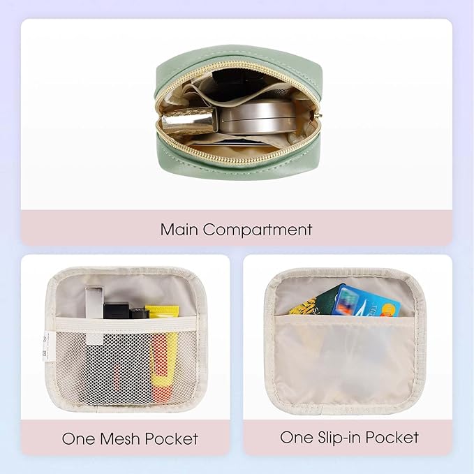 Wandering Nature Small Makeup Bag for Purse Mini Make up Pouch Cute Cosmetic Pouch for Women with Slip-in Pockets Matte Leather, Green