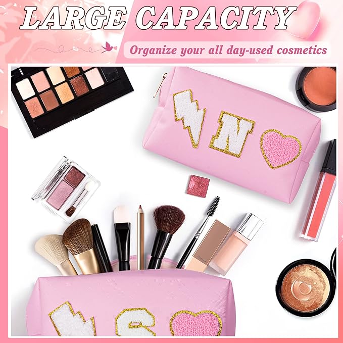 - Exquisite Design: Cute make up bag decorated with chenille patches and gold glitter edge for a chic look.